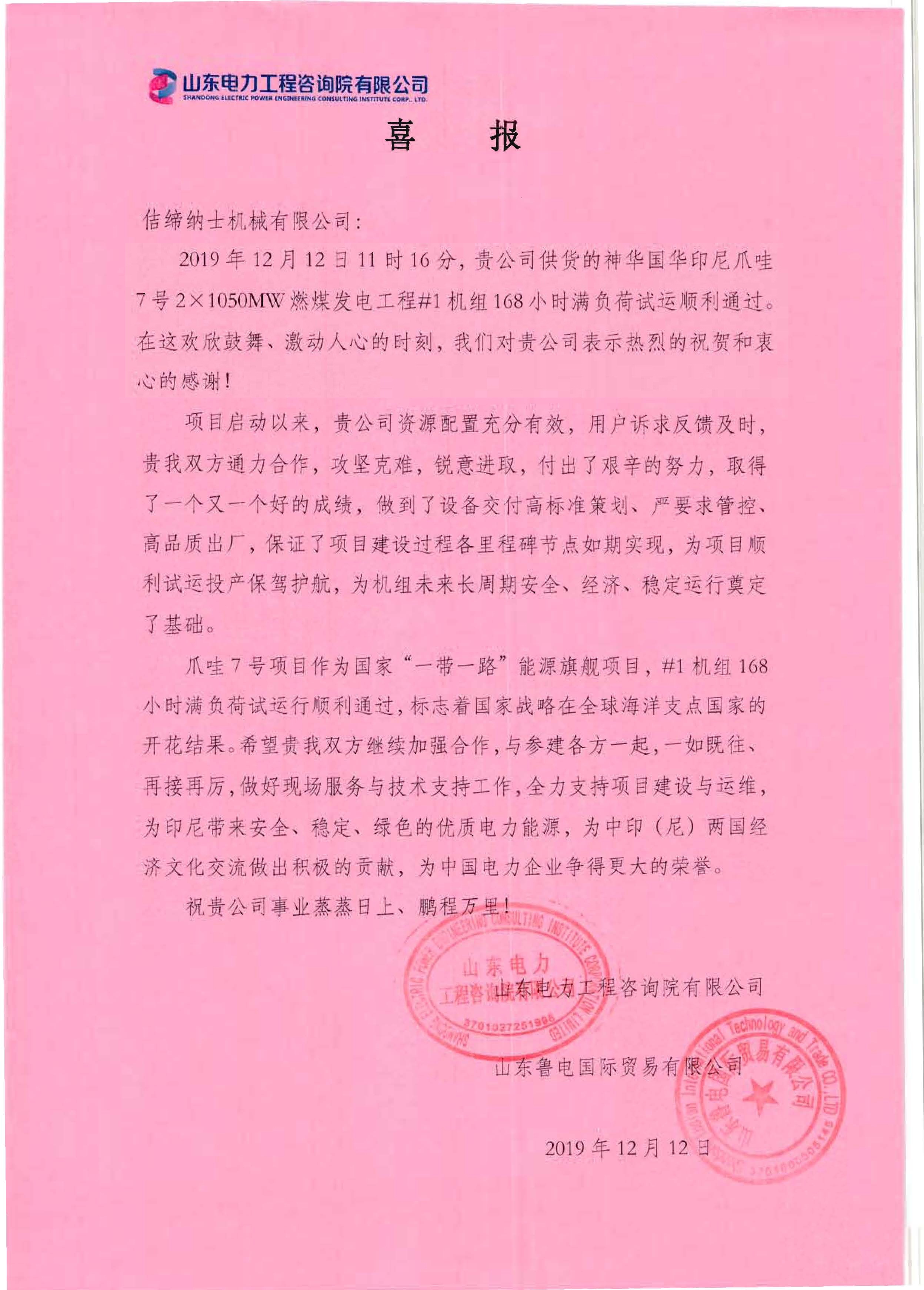 12月12日11時(shí)16分,由山東電力工程咨詢(xún)?cè)河邢薰韭?lián)合總承包的神華國(guó)華印尼爪哇7號(hào)2×1050M燃煤發(fā)電工程1號(hào)機(jī)組一次性通過(guò)168小時(shí)滿(mǎn)負(fù)荷試運(yùn)行,這一中國(guó)企業(yè)在海外投資建設(shè)的單機(jī)容量大、擁有自主知識(shí)產(chǎn)權(quán)的火電機(jī)組正式投產(chǎn)。爪哇7號(hào)項(xiàng)目凝汽器抽真空系統(tǒng)采用了8套佶締納士中國(guó)生產(chǎn)的AT3006&2BE系列真空泵機(jī)組。項(xiàng)目試運(yùn)行成功后,山東院時(shí)間向我們發(fā)來(lái)了喜報(bào),感謝NASH中國(guó)團(tuán)隊(duì)在整個(gè)項(xiàng)目運(yùn)行中的密切配合,為項(xiàng)目的順利試運(yùn)行投產(chǎn)保駕護(hù)航。