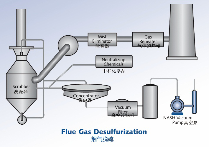 對煙氣進(jìn)行脫硫時(shí),會(huì)產(chǎn)生石膏漿液,需要使用真空皮帶過濾機(jī)進(jìn)行脫水,形成石膏產(chǎn)品;過濾產(chǎn)生的一些雜質(zhì)、水汽、及少量水會(huì)進(jìn)入真空泵內(nèi),NASH液環(huán)泵采用水作為工作介質(zhì),且部件間有較大間隙,可以有效的在該工況下能夠很好地運(yùn)行,滿足客戶使用,是用戶理想的選擇。