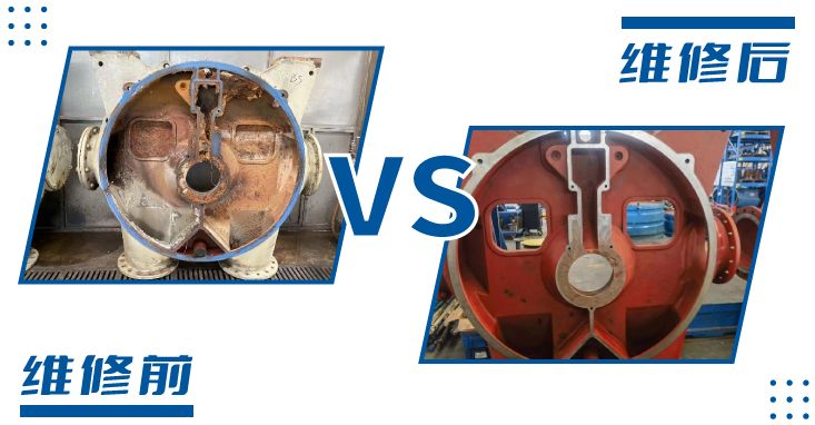 經(jīng)過(guò)現(xiàn)場(chǎng)詳細(xì)勘查,我們發(fā)現(xiàn)泵體內(nèi)部配件因18多年長(zhǎng)時(shí)間的工作液沖刷而受損嚴(yán)重。對(duì)此,我們運(yùn)用高壓水除垢、噴砂清理、激光修復(fù)、襯膠技術(shù)以及精密加工等一系列專業(yè)手段,對(duì)泵體進(jìn)行了全面修復(fù)。特別值得一提的是,我們將原鑄鐵材質(zhì)的圓盤升級(jí)為襯膠圓盤,極大地增強(qiáng)了圓盤的使用壽命。修復(fù)后的真空泵性能卓越,外觀煥然一新,贏得了客戶的高度贊譽(yù)。